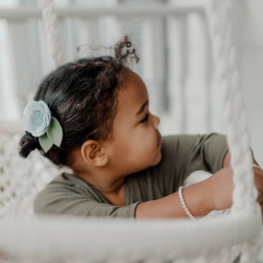 Littles HandmadeOriginal price $20.00 - Original price $20.00Original price$20.00$20.00 - $20.00Current price $20.00| /Felt flower featuring blue, white and blush with greenery. Approximately 3” across.