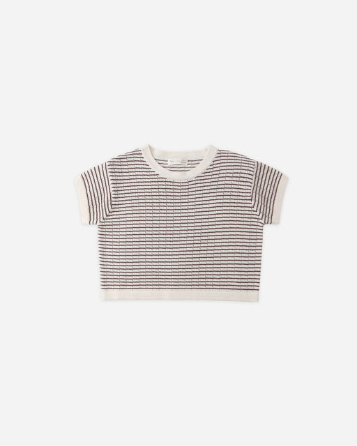 Boxy Crop Knit Tee - Chocolate Stripe