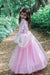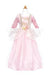 Our golden rose princess dress was such a success that we are now introducing a pink rose princess dress! This dress is accented with gold trim, shimmering organza, and two layers of tulle over top of the pink satin hoop skirt. The sleeves and bodice are made of soft crushed stretch velour - the velour has spandex for comfort and size flexibility. This dress is every princess’s dream!