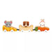 Something is happening at the farm! The wooden cars and animals in this magnetic game will provide many a frantic race for babies aged 18 months and up. This educational toy has been designed to stimulate children's motor skills, imagination and logic. Both small and large farm animals like to race! This magnetic toy is made up of 3 cars (carrot, bone and cheese) and 3 wooden characters (rabbit, dog and mouse). Baby can work on their logic by pairing each animal with their favourite food, or by seating them in the car of their choice: they are all interchangeable! When our farm friends aren't in the mood for competition, they can go for a ride in unison, attached just like train carriages, one behind the other via the magnets. Get ready to see the cheese car speeding across the living room floor, or the farm? Only your child's imagination will decide! Fun and dexterity are in store when it comes to this magnetic toy for babies. The small cars and figurines are made from FSC™-certified wood.