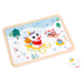The Janod In the Mountains 24-Piece Wooden Puzzle is an engaging educational toy designed for children aged 3 years and up. This puzzle features a vibrant winter scene where a unicorn and other animals partake in a sled race, promoting the development of fine motor skills, concentration, and observation abilities. A unique aspect of this puzzle is the inclusion of a spot the difference game, encouraging children to identify 5 subtle differences between the puzzle illustration and the template, enhancing their attention to detail. The puzzle pieces are crafted from FSC-certified wood, ensuring sustainability and safety. The dimensions of the completed puzzle are 30 x 22 cm, making it an ideal size for young children to handle. The base tray includes a printed template to assist in assembly, and a small notch is provided for easy removal of the pieces. This product is part of Janod's commitment to creating high-quality, eco-friendly educational toys.