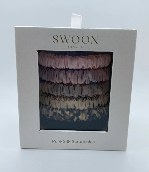This beautiful set includes six 100% pure mulberry silk scrunchies in a gift box. Silk is gentle on the hair, providing strong hold without creasin...