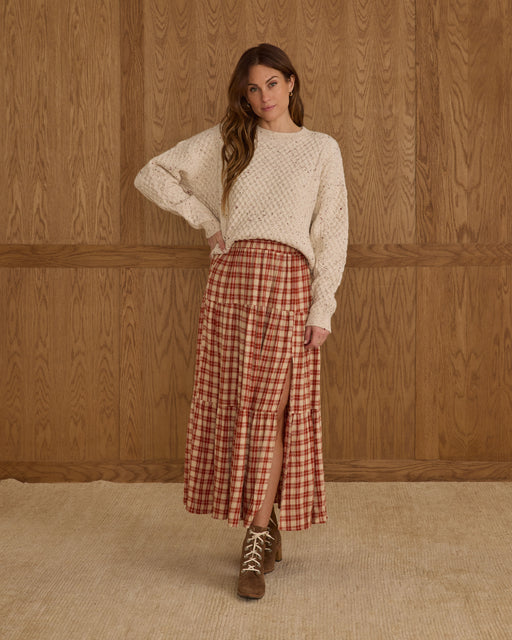 Rylee & CruOriginal price $93.00 - Original price $93.00Original price$93.00$93.00 - $93.00Current price $93.00| /Our Tiered Midi Skirt is a beautiful blend of comfort and style, featuring an elastic waistband and a slit just above the knee.Featuring our 'red p...
