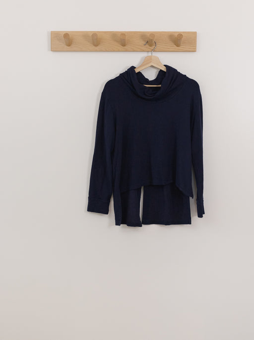 Anne Mulaire - Navy Blue Turtleneck Tunic Top
