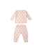 This comfortable cotton jersey set includes a relaxed long sleeve crewneck tee and dropped-crotch slouch pants. Shoulder snaps included on sizes 0–3M - 6–12M for easy changes.