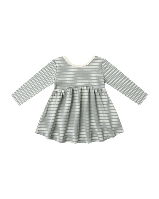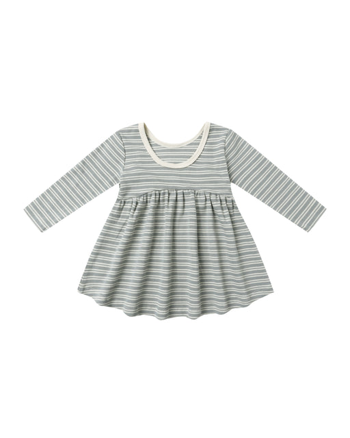 Ribbed Long Sleeve Dress || Steel Blue Micro Stripe