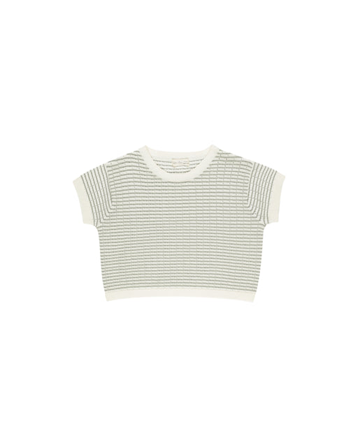 Boxy Crop Knit Tee || Sage Stripe