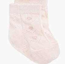 View full detailsAdd a dainty detail to your little one’s wardrobe with our Amour Sock - Parchment/Shell Pink. These soft white socks feature a delicate heart on th...