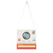 - Presented in a paper box with a camera design and a blue striped grosgrain ribbon strap